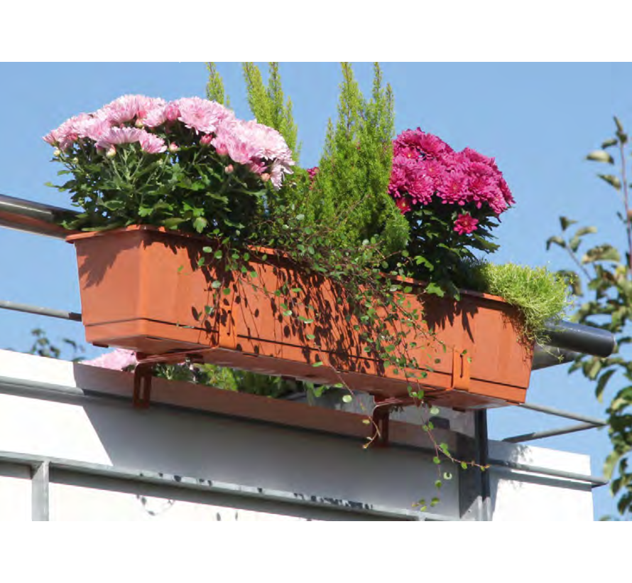 Zorg voor een veilige bevestiging met de bijpassende Geli balkonbeugels en houd je terras netjes met een onderzetter (40 cm) in dezelfde kleur om overtollig water op te vangen.