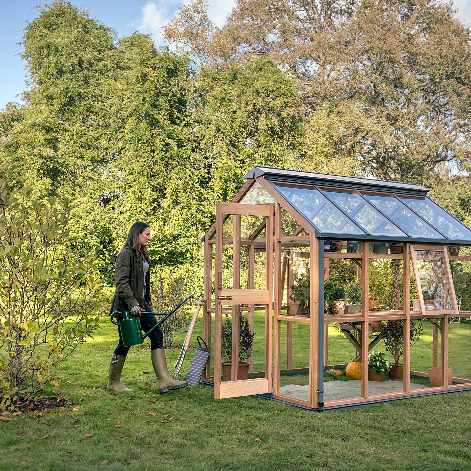 Niet zo groot, maar wel alle voordelen van het bezitten van een cederhouten plantenkas. Deze maat past goed in een kleine tuin of als zaai-en kweekambities overzichtelijk moeten blijven. Deze kas heeft een openslaande deur.Lees meer