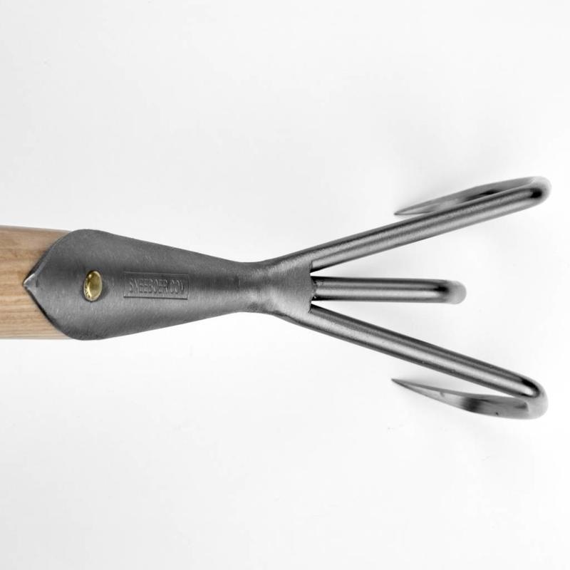 De cultivator is vervaardigd van ambachtelijk gesmeed roestvaststaal en heeft een stevige FSC-goedgekeurde houten steel. Met specificaties zoals een gewicht van 1 kg, 3 scherpe tanden van 6 cm en een afstand van 3 cm tussen elke tand, is dit hoogwaardige product ontworpen om lang mee te gaan. Kies voor kwaliteit, kies voor de tuinhark van Sneeboer.