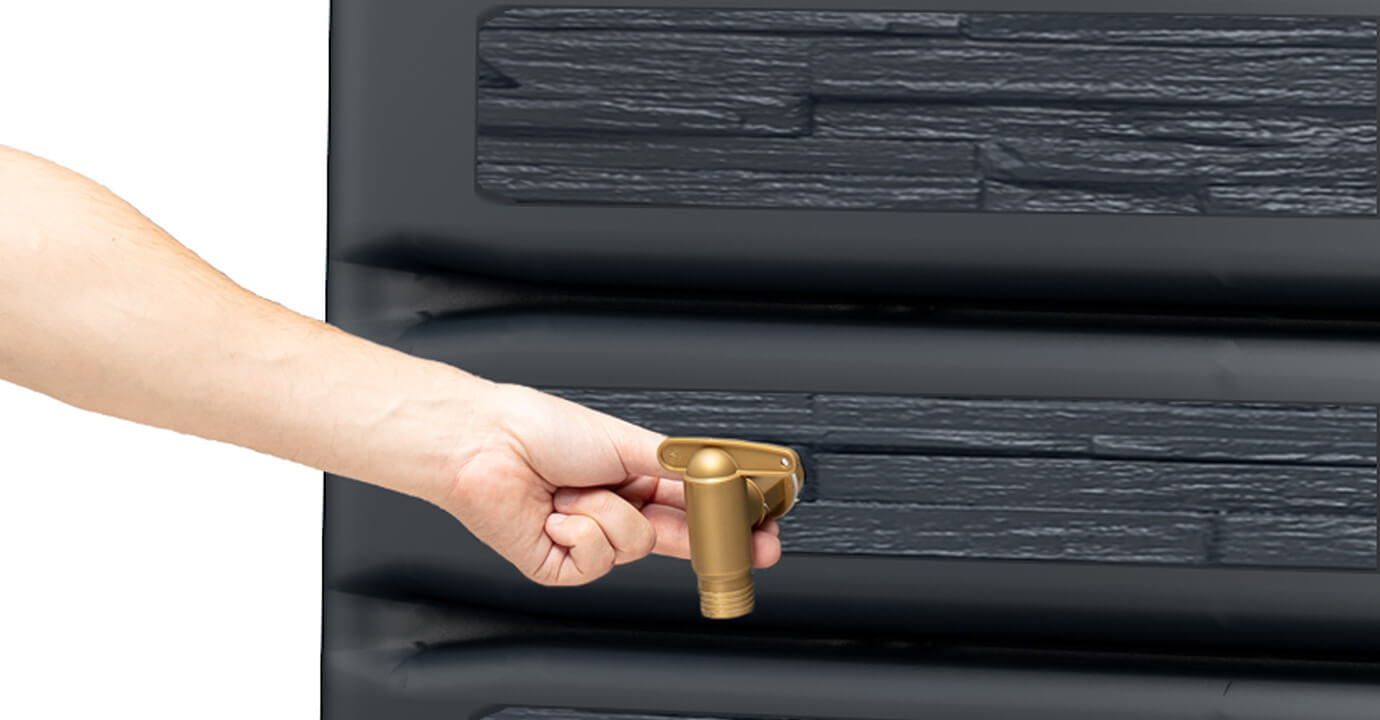 De Regenton Extra Slim is niet alleen praktisch, maar ook duurzaam. Gemaakt van 100% gerecyclede materialen, maakt u met deze regenton een milieuvriendelijke keuze. De handige gouden kunststof kraan zorgt ervoor dat u het opgevangen regenwater moeiteloos kunt aftappen wanneer u het nodig heeft. En geen zorgen over harde wind; de meegeleverde windverankeringsset houdt uw regenton stevig op zijn plaats. Voor de exacte afmetingen verwijzen wij u naar de maattekeningen.