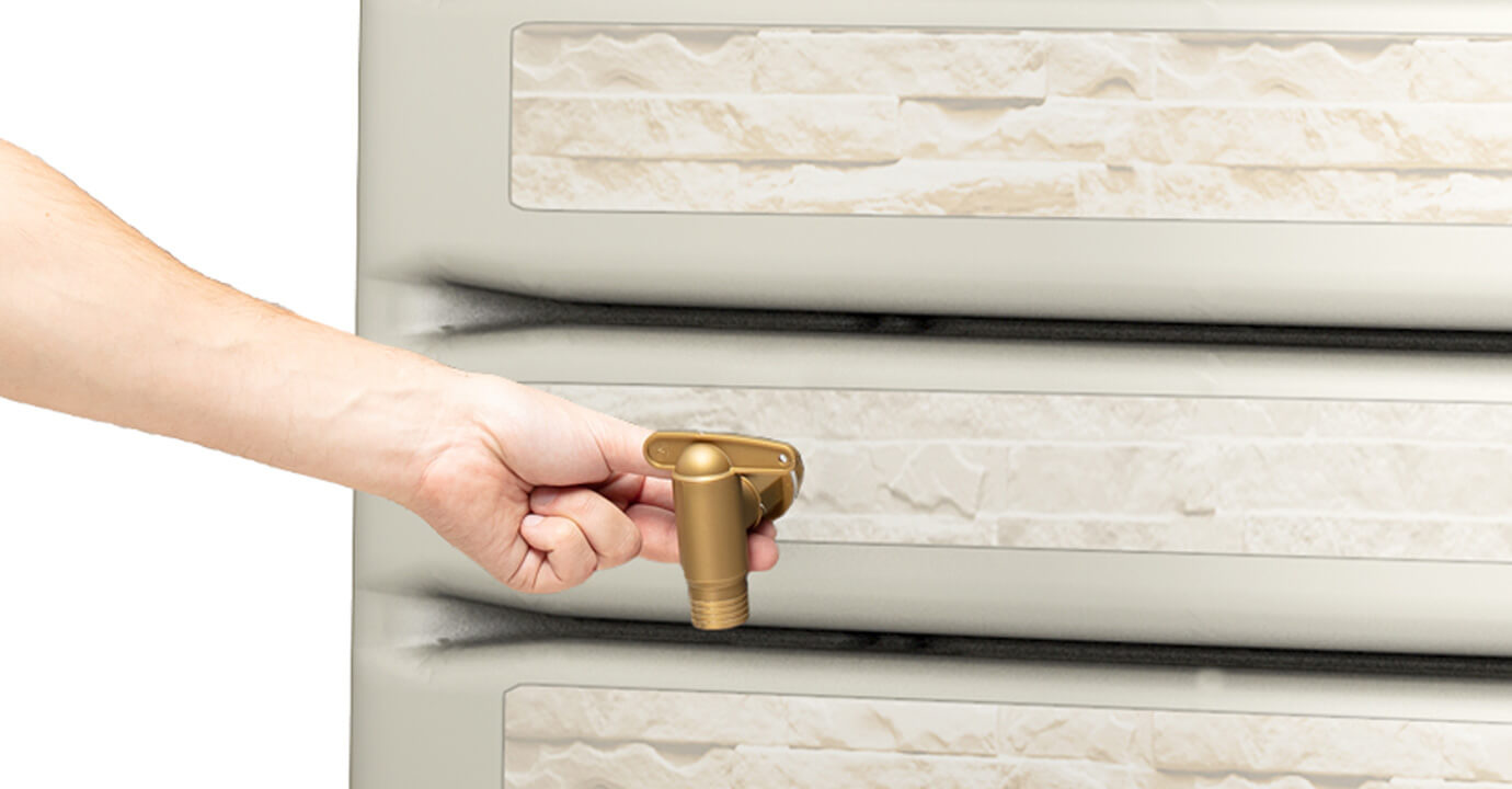 - Meegeleverde accessoires: Kraantje, winterstop, muurbevestigingssetje