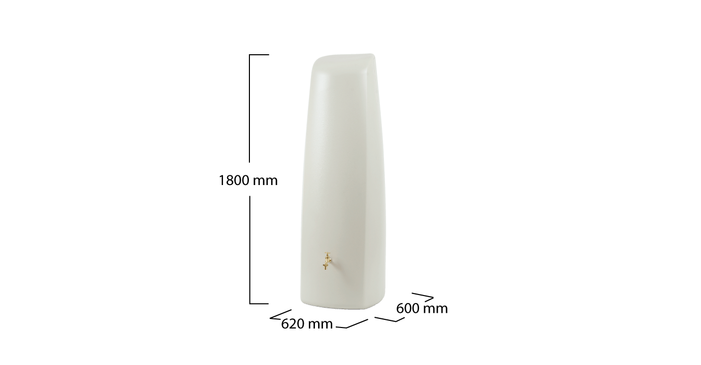 Met afmetingen van 60 cm breed, 180 cm hoog en 60 cm diep, en een gewicht van 18 kg, is deze regenton zowel praktisch als visueel aantrekkelijk. Winter/vorstbestendig mits leeg en met kraan open. Exclusief regenton vulautomaat, dus we raden aan deze erbij aan te schaffen.