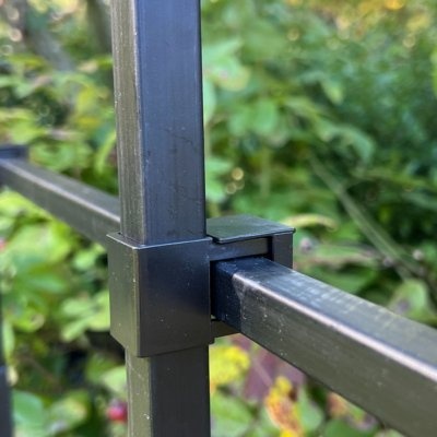 De trellis is van RVS, zwart gepoedercoat wordt als bouwpakket geleverd en makkelijk in elkaar te zetten waarvoor je geen gereedschap nodig hebt. Verbind de stangen met de meegeleverde verbindingsstukken en dus de staanders 15 cm in de grond.