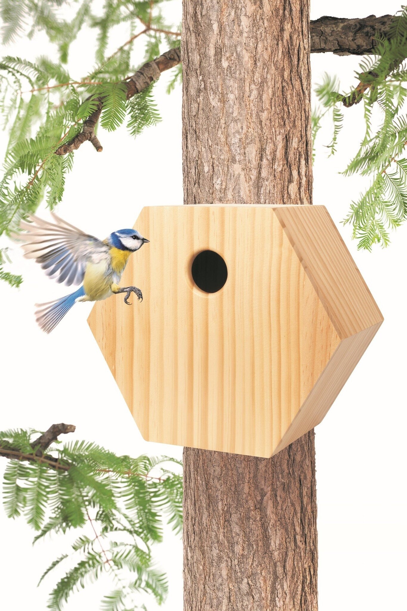 Singing FriendNestkast Levi - Hout - 6-hoek - Vogelhuisje