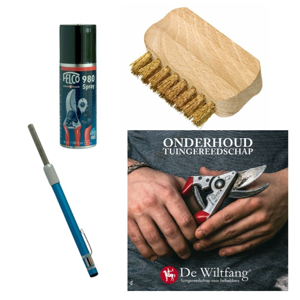 De WiltfangOnderhoud set voor snoeischaar - slijppen - informatieboekje - olie - staaldraadborsteltje