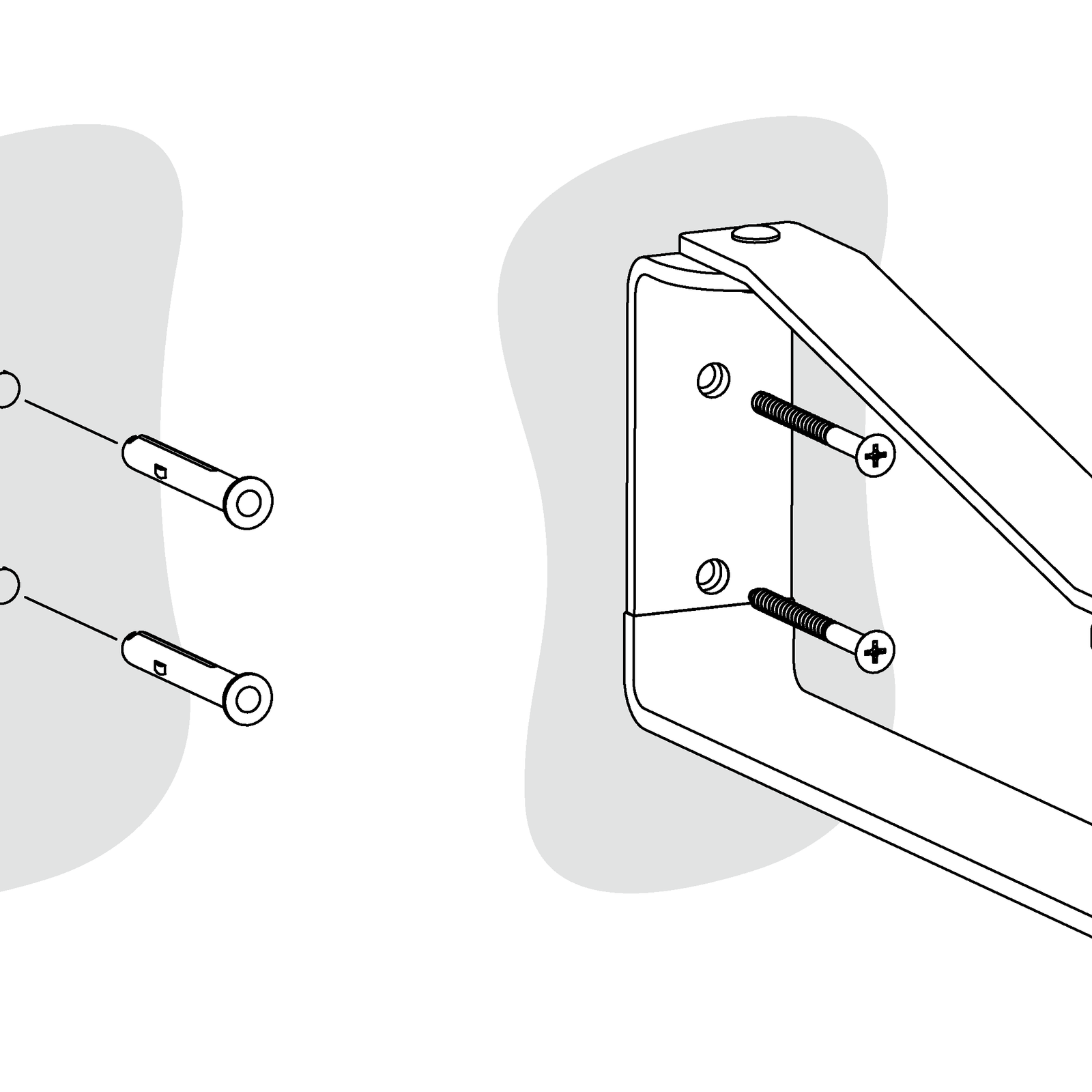 - Verpakkingsinhoud: 2 wandhaken, 4 bevestigingsschroeven, 4 pluggen, 1 installatiehandleiding