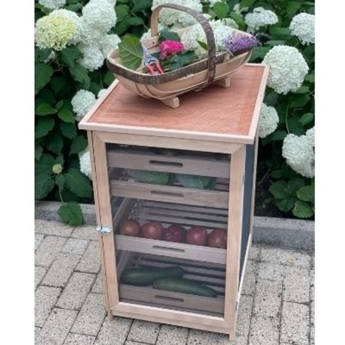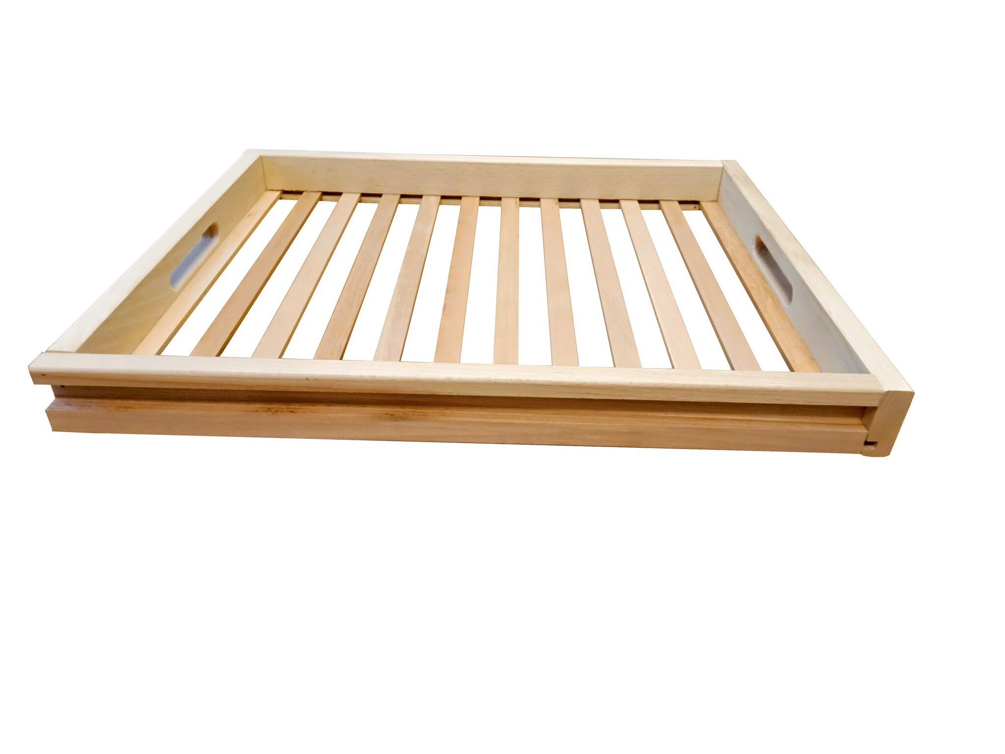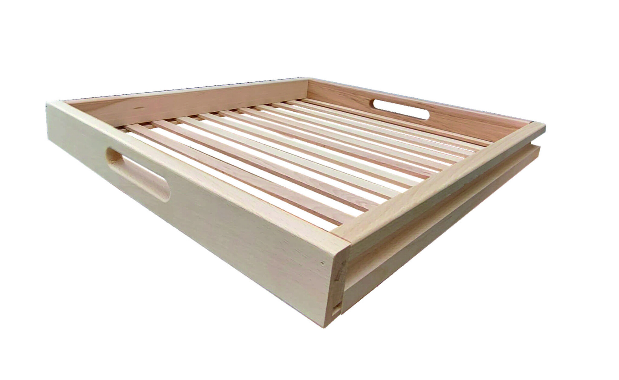 De lades hebben een ovalen gat, zodat je deze makkelijk naar voren en naar achteren kan schuiven. De bodem bestaat uit horizontale latje met een ruimte van ongeveer 2 cm ertussen.