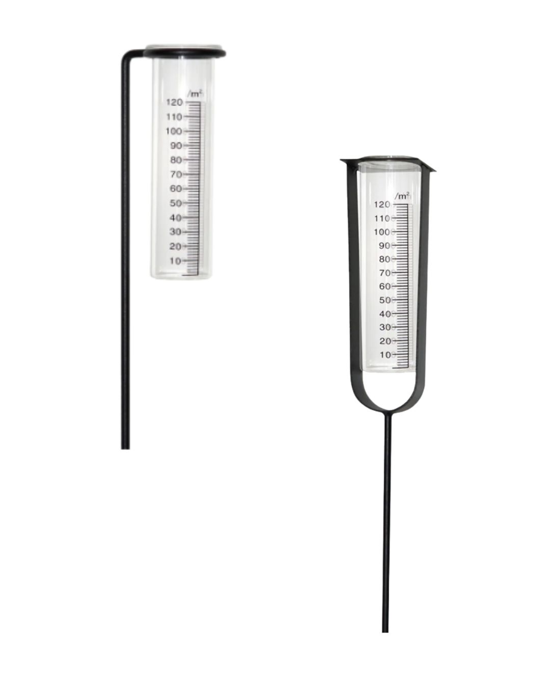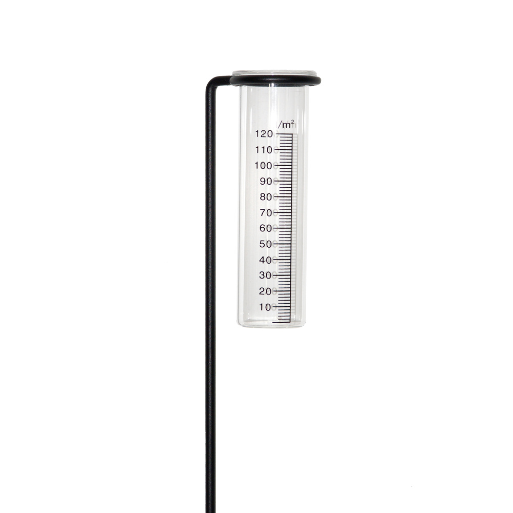 Meet nauwkeurig de hoeveelheid neerslag met onze elegante regenmeter op een zwarte metalen standaard. Het ontwerp van de regenmeter met een breedte van 6 cm en een hoogte van 120 cm meter maakt het gemakkelijk te plaatsen. Het glaasje is inbegrepen, waardoor je eenvoudig de regenval kunt aflezen en bijhouden.