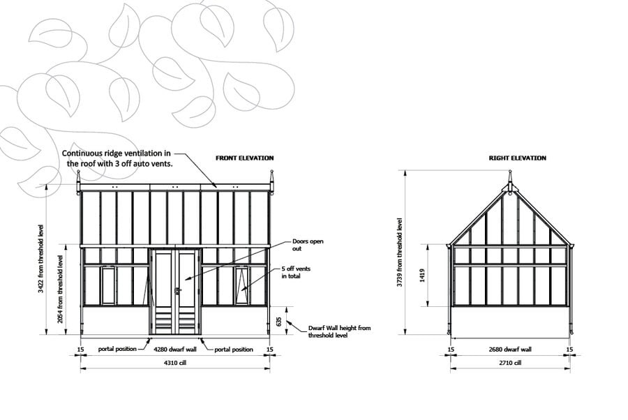 Het verschil is dat de planthouse verhoogd is, waardoor je meer ruimte hebt om de hoogte in te kweken met bijvoorbeeld fruitbomen, tomatenplanten, enz. Ook een verschil is dat dit type een dubbele openslaande deur heeft in de zijgevel in plaats van de smalle kant. De planthouse heeft dan ook een extra ramen rij waardoor je meer ruimte hebt als je een hoge legplank erbij besteld om daar je zaailingen laat ontkiemen.