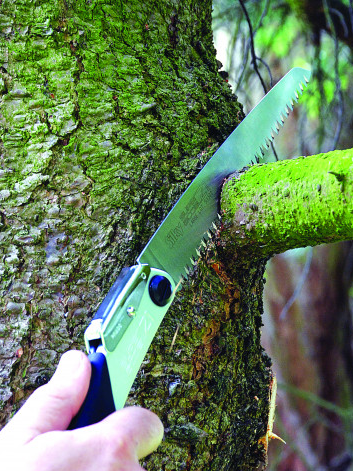 - Zaag takken niet in één keer af, maar maak hanteerbare stukken. Zaag de tak bij de stam eerst van onderen in, zaag daarna de tak door.