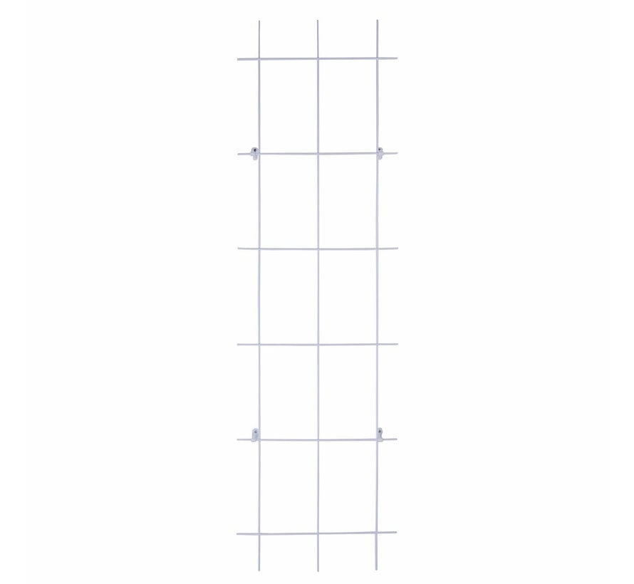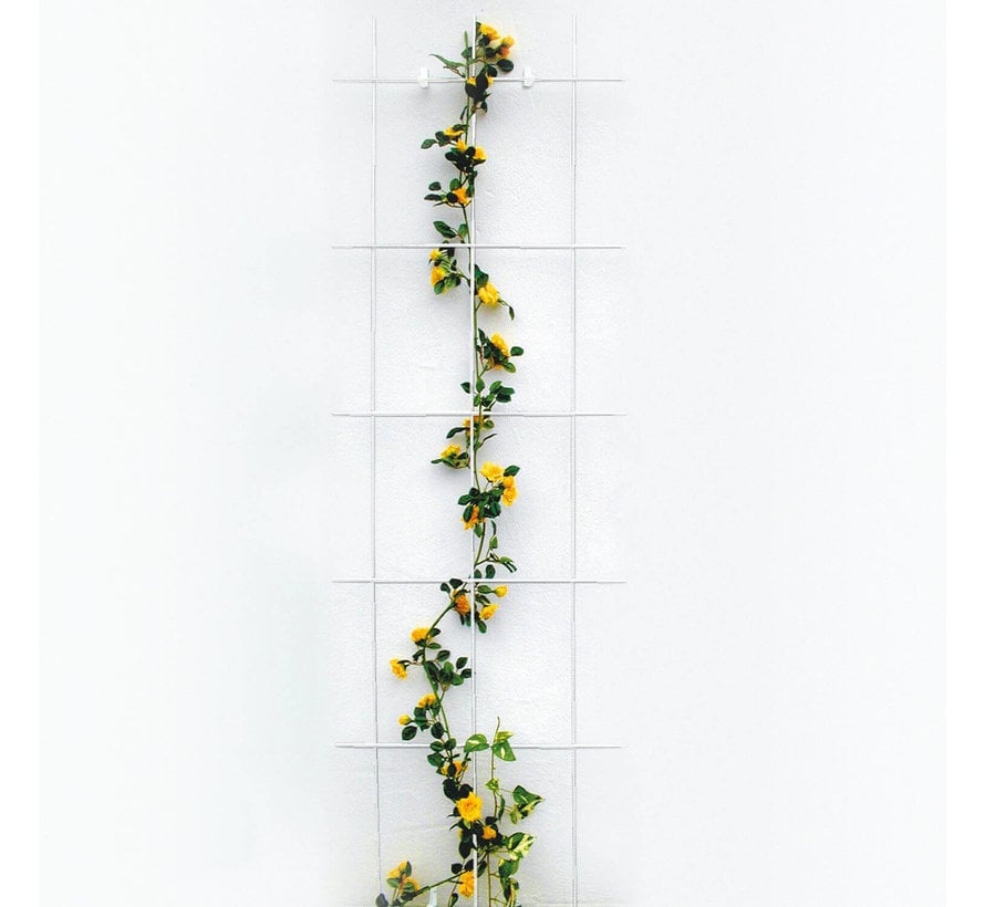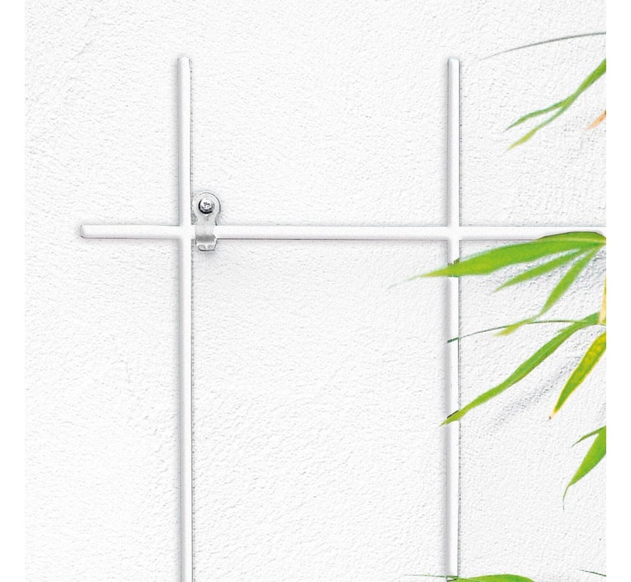 Er zijn verschillende planten en ook verschillende plantensteunen. Deze muurtrelli is inclusief clips die je in de muur kan boren. De hoogte is 150 cm en de breedtes variëren van 45cm - 75cm.Lees meer