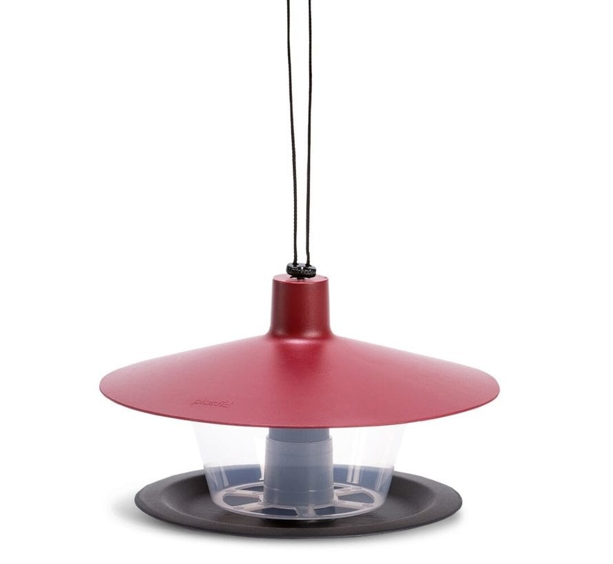 Een modern voederhuisje genaamd Finch in de kleur wijnrood of antraciet kan gebruikt worden om vogelvoer in te plaatsen. Zo zorg je ervoor dat vogeltjes tijdens de schaarse periode gewoon voedsel hebben. Het voederhuisje kan eenvoudig worden opgehangen aan het meegeleverde ophangkoord of gemonteerd worden aan reling of paal.