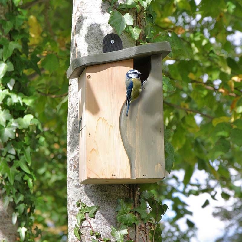 Dit unieke nestkastje is geïnspireerd op de natuurlijke vormen van oude boomstammen en heeft een gebogen ingang die lijkt op een boomkloof. Het ontwerp biedt een veilige en aantrekkelijke broedplek voor diverse kleine vogelsoorten, zoals mezen, mussen en vliegenvangers.