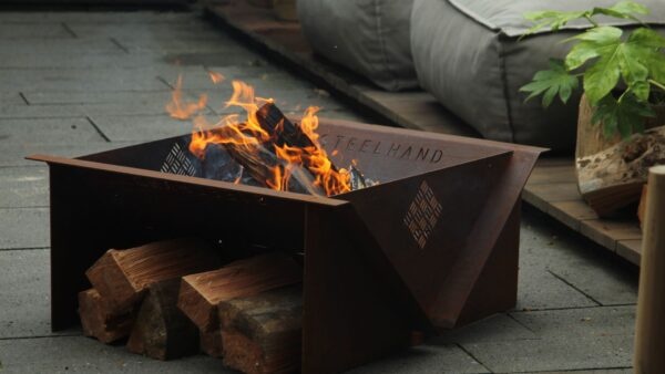 Naast de aantrekkelijke uitstraling is de vuurkorf 100% geproduceerd en ontworpen in Nederland. De vuurkorf is gemaakt van 3 mm dik cortenstaal, dat ervoor zorgt dat de vuurkorf een roestkleurige laag krijgt die het onderliggende materiaal beschermt. Dit betekent dat de V-Pit tot wel 10 keer langer meegaat dan stalen vuurkorven.